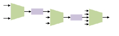 Within a NoC, performance and behavior emerge from how transport units such as merges, splits, buffers, and links are composed across the topology.