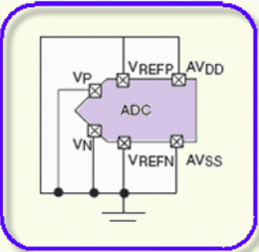 To achieve the best possible performance and accuracy with all measurements (both on-chip and external), six dedicated pins are provided for the ADC reference and power supply (refer Figure 5 for dedicated pins). Care must be taken with the connection of these pins to ensure the best possible performance from the ADC. For typical usage, the reference voltage between VREFP and VREFN should be maintained at 2.5V ± 0.2% using an external reference IC.