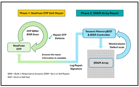 Figure 1. Two-phase approach designed for SRAM repair, based on the integration between NeoFuse OTP and Tessent™ MemoryBIST & BISR Controller.