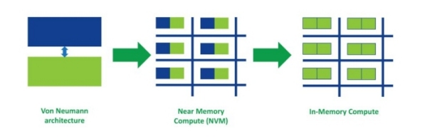 Above: From conventional (Von Neumann) computing architectures to IMC