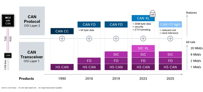 This progression illustrates how Bosch is continuously advancing the CAN ecosystem, uniting proven reliability with modern bandwidth requirements for next-generation vehicle architectures.