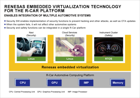 Renesas Electronics Corporation (TSE:6723), a premier supplier of advanced semiconductor solutions, today announced its new software packages for the R-Car automotive computing platform to improve security and safety capabilities for next-generation connected cars. The software packages implement embedded optimized virtualization technology that enables embedded systems to have - in a single system - security features that protect the car from external threats, and functional safety features that assure continued safe operation even in the event of failures.